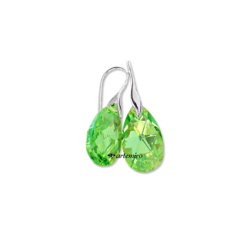 Klasyczne kolczyki wykonane ze srebra próby 925 oraz kryształów Crystals from Swarovski o kształcie migdałów w pięknym zielonym kolorze (Peridot AB).