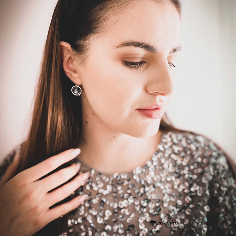 Kolczyki wpinane są w ucho za pomocą bigli srebrnych otwartych. Do każdej pary dokładamy zatyczki silikonowe zapobiegające wypadnięcie kolczyków z ucha.